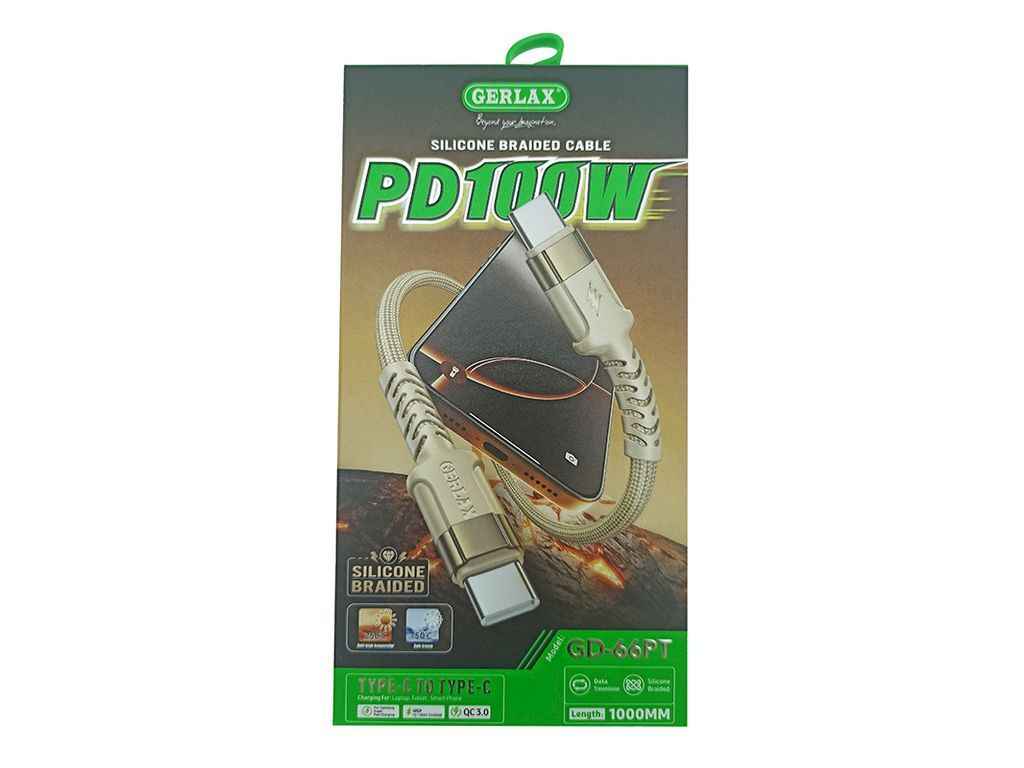 Кабель Type-C - Type-C GD-66PT 6A/PD100W/QC3.0 тканинний молочний 1м ТМ GERLAX