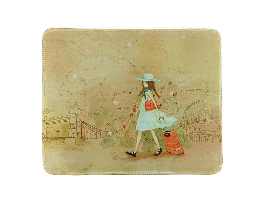 Килимок для мишки 260х210мм Дівчинка з валізою з боковою прошивкою антиковзаюча основа (L005) ТМGERLAX