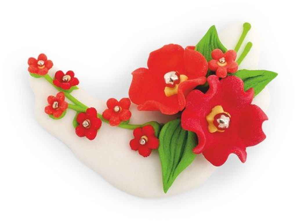 Кондитерська прикраса Букетик №8 поєднує в собі різнокольорові обємні квіточки з обємними зеленими листочками, виготовлений з цукрової пасти та білкової маси. Завдяки цікавому дизайну даний виріб легко поєднати з іншими видами кондитерських прикрас та різноманітними кондитерськими посипками, а також використовувати індивідуально, створивши неперевершений вигляд кондитерському виробу.
