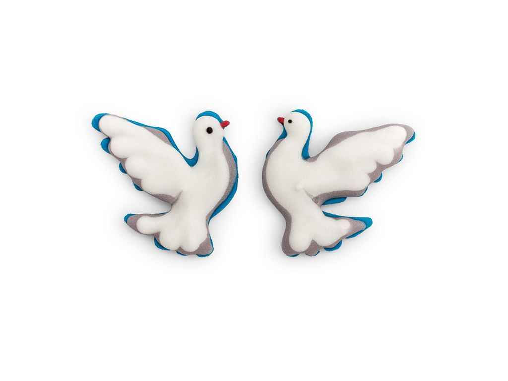 Набір Два голуби виготовлений з білкової маси та цукрової пасти, комплектується з двох голубів. Майстерне виконання прикраси додасть оригінальності пасхальному виробу, також прикраса легко поєднується з іншим пасхальним та кондитерським декором, солодкими кондитерськими посипками.