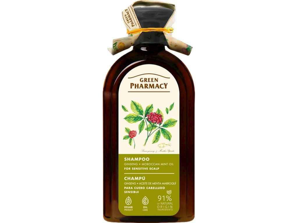 Шампунь 350мл д/чутливої шкіри голови Женьшень та олія марокканської мяти ТМ GREEN PHARMACY
