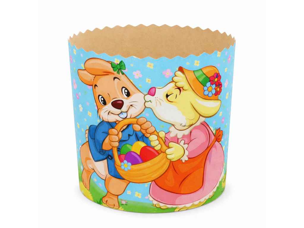 Форми виготовлені з жиростійкого пергаментного паперу, перфорація стінок. Повноколірний друк виконаний харчовими фарбами. Дно виготовлено з двохшарового, жиростійкого,перфорованого матеріалу.Діамерт дна 70мм.Висота 78мм. Вага готового виробу 110грам. В упаковці 5 штук в одному дизайні