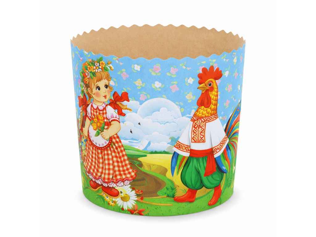 Форми виготовлені з жиростійкого пергаментного паперу, перфорація стінок. Повноколірний друк виконаний харчовими фарбами. Дно виготовлено з двохшарового, жиростійкого,перфорованого матеріалу.Діамерт дна 70мм.Висота 78мм. Вага готового виробу 110грам. В упаковці 5 штук в одному дизайні