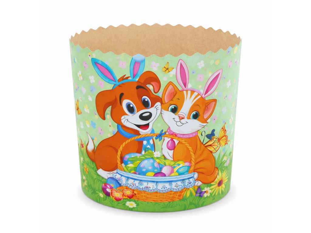 Форми виготовлені з жиростійкого пергаментного паперу, перфорація стінок. Повноколірний друк виконаний харчовими фарбами. Дно виготовлено з двохшарового, жиростійкого,перфорованого матеріалу.Діамерт дна 70мм.Висота 78мм. Вага готового виробу 110грам. В упаковці 5 штук в одному дизайні