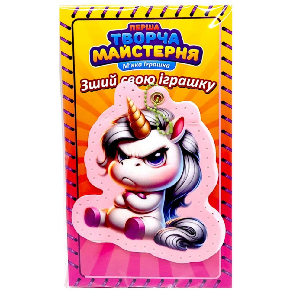"Розовая Единорожка" - это набор для создания собственной мягкой игрушки. Ребёнок может самостоятельно собрать милого единорога и получить готовую мягконабивную игрушку размером около 14 см.