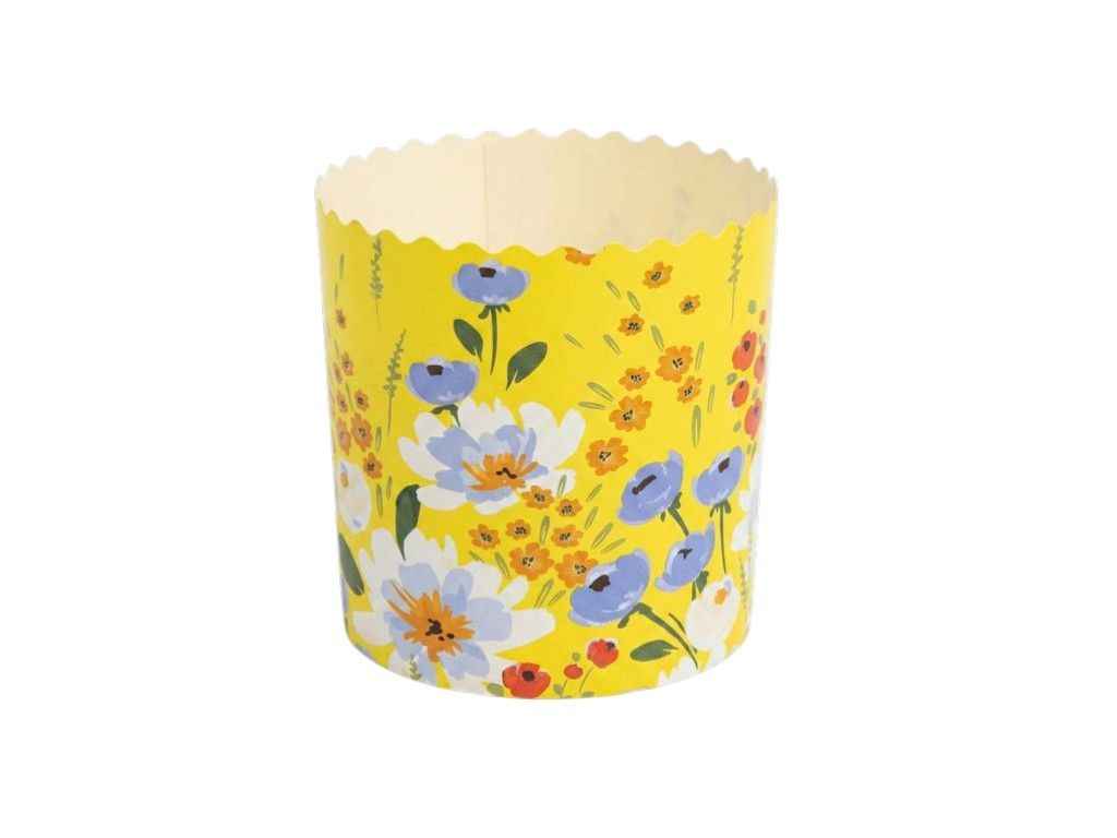 Форми виготовлені з жиростійкого пергаментного паперу, перфорація стінок. Повноколірний друк виконаний харчовими фарбами. Дно виготовлено з двохшарового, жиростійкого,перфорованого матеріалу.Діамерт дна 110мм.Висота 85мм. Вага готового виробу 375грам. В упаковці 5 штук в одному дизайні