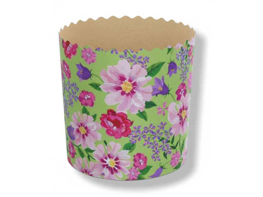Форми виготовлені з жиростійкого пергаментного паперу, перфорація стінок. Повноколірний друк виконаний харчовими фарбами. Дно виготовлено з двохшарового, жиростійкого,перфорованого матеріалу.Діамерт дна 110мм.Висота 85мм. Вага готового виробу 375грам. В упаковці 5 штук в одному дизайні