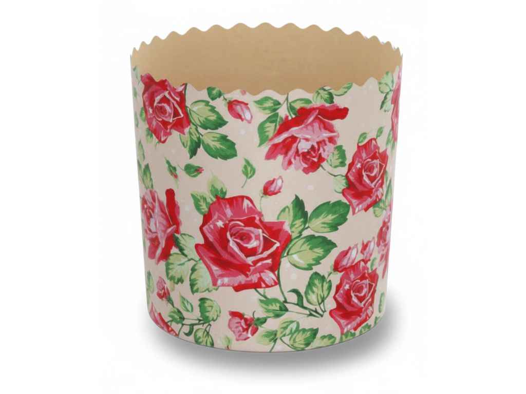 Форми виготовлені з жиростійкого пергаментного паперу, перфорація стінок. Повноколірний друк виконаний харчовими фарбами. Дно виготовлено з двохшарового, жиростійкого,перфорованого матеріалу.Діамерт дна 130мм.Висота 85мм. Вага готового виробу 500грам. В упаковці 5 штук в одному дизайні