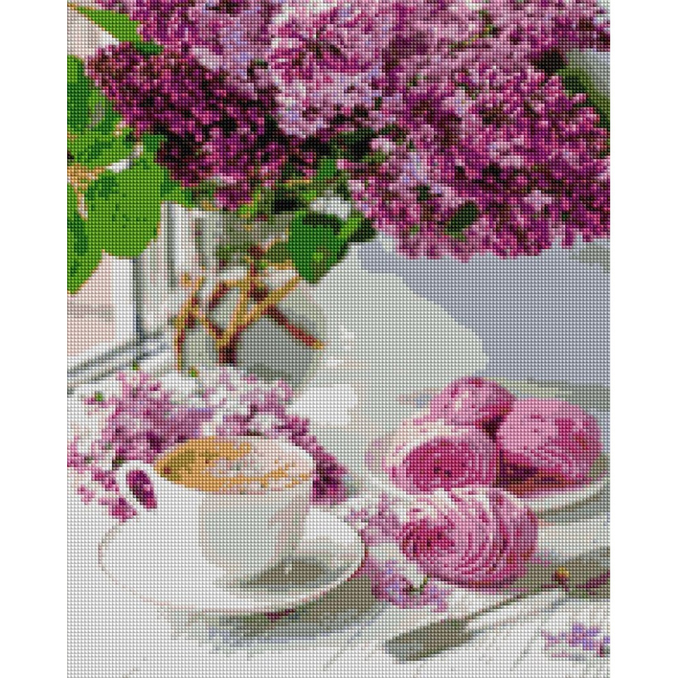 Алмазная мозаика "Сирень и кофе" DBS1106, 40x50 см