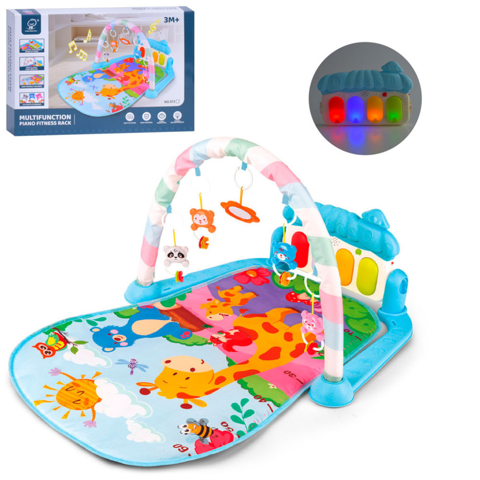 Детский развивающий коврик 972, 72х47 см, дуга, подвески 5 штук, погремушка