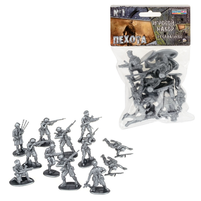 Солдатики "Пехота" No1. Каждый мальчик с самого раннего детства видит себя отважным воином и благородным рыцарем, защитником маленьких и слабых, поэтому такой набор реалистично выполненных солдатиков станет отличным подарком для юного стратега.А какие захватывающие сражения и талантливо продуманные кампании можно разыгрывать со своими друзьями как дома, так и на улице, где стенки песочницы становятся непреодолимой преградой, а горка камней — неприступной башней!