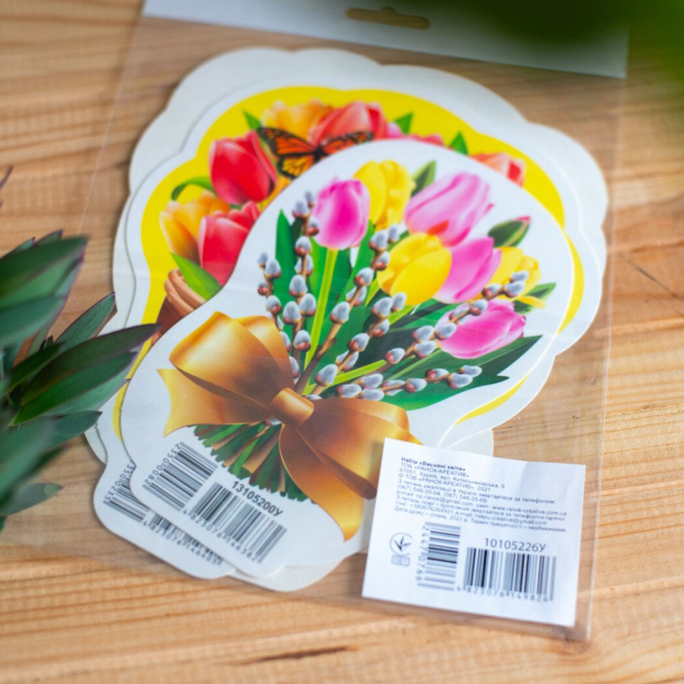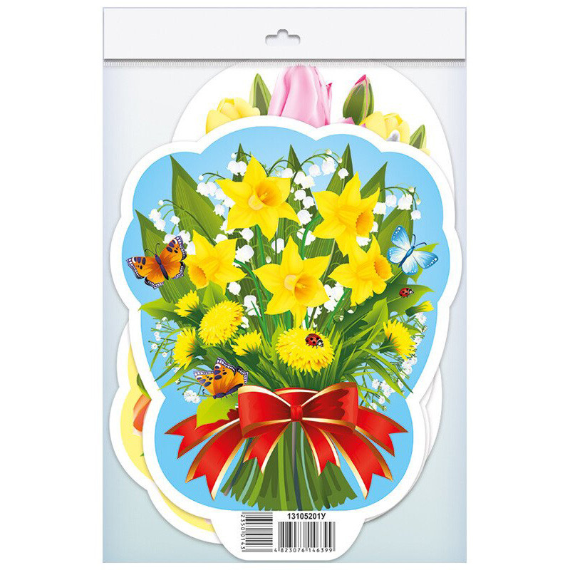 Набор весеннего декора "Цветы" - яркий и стильный комплект для создания праздничной или весенней атмосферы дома или в классе.В набор входят 3 букета цветов и 1 цветок в горшке, изображения которых вырезаны на картоне. Каждый букет имеет основу, которую можно вставить, чтобы композиция стояла самостоятельно.