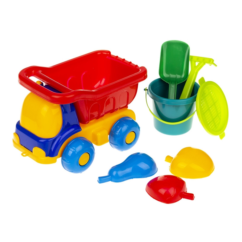 Машина "Пчелка" No3 - большой комплект из машинки-грузовичка, удобного ведерка с ситом, грабелек, лопатки и трех пасочек, который подойдет детям от 3-х лет.Тщательно продуманный производителем набор предметов позволяет надолго занять детское внимание и придумать множество вариантов веселых игр как на свежем воздухе, так и в домашних условиях. Все игрушки ярких, приятных глазу цветов обязательно привлекут внимание ребенка и станут фаворитами среди всех домашних игрушек.Прочный пластик из которого изготовлены игрушки, - высокого качества, безопасный для ребенка. Он не трескается, устойчив к сколам и царапинам, не выгорает на солнце, игрушки из таких материалов прослужат долго, не теряя внешней привлекательности и не деформируясь.