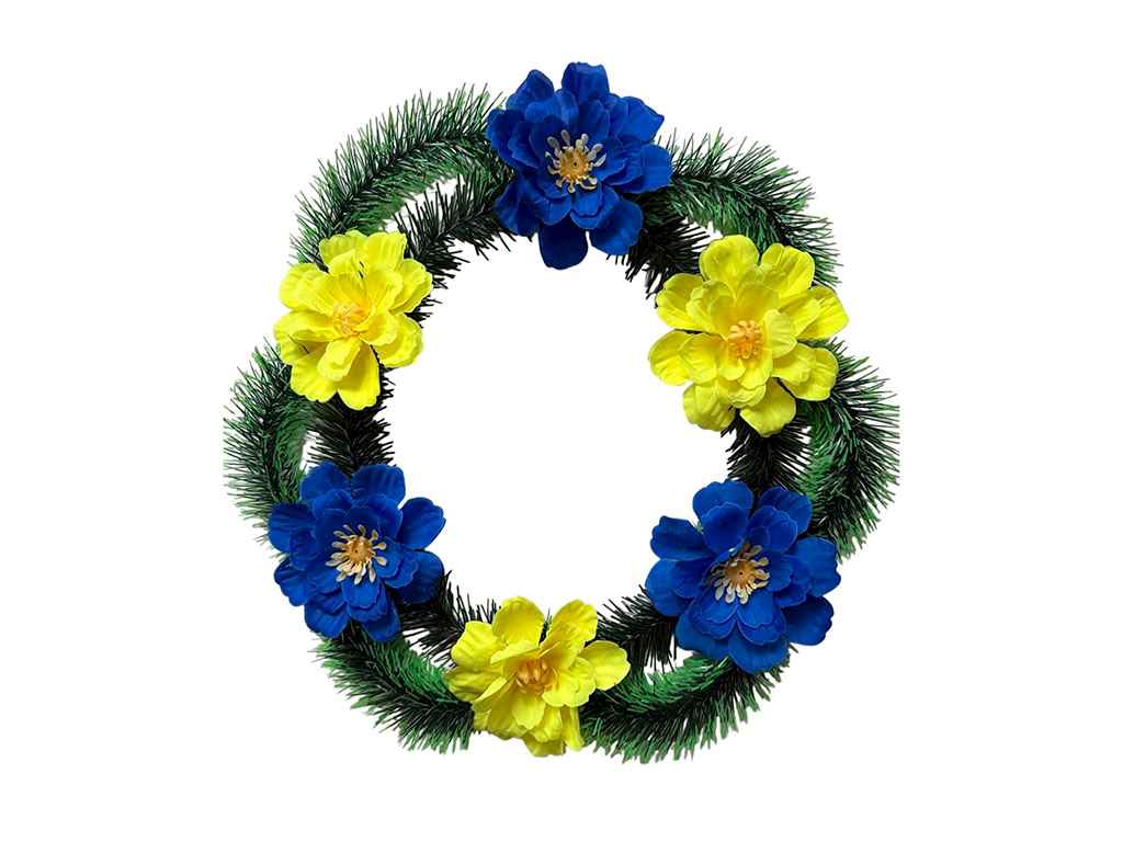 Вінок поминальний Далія 40х40см жовто-блакитний ТМ Memori