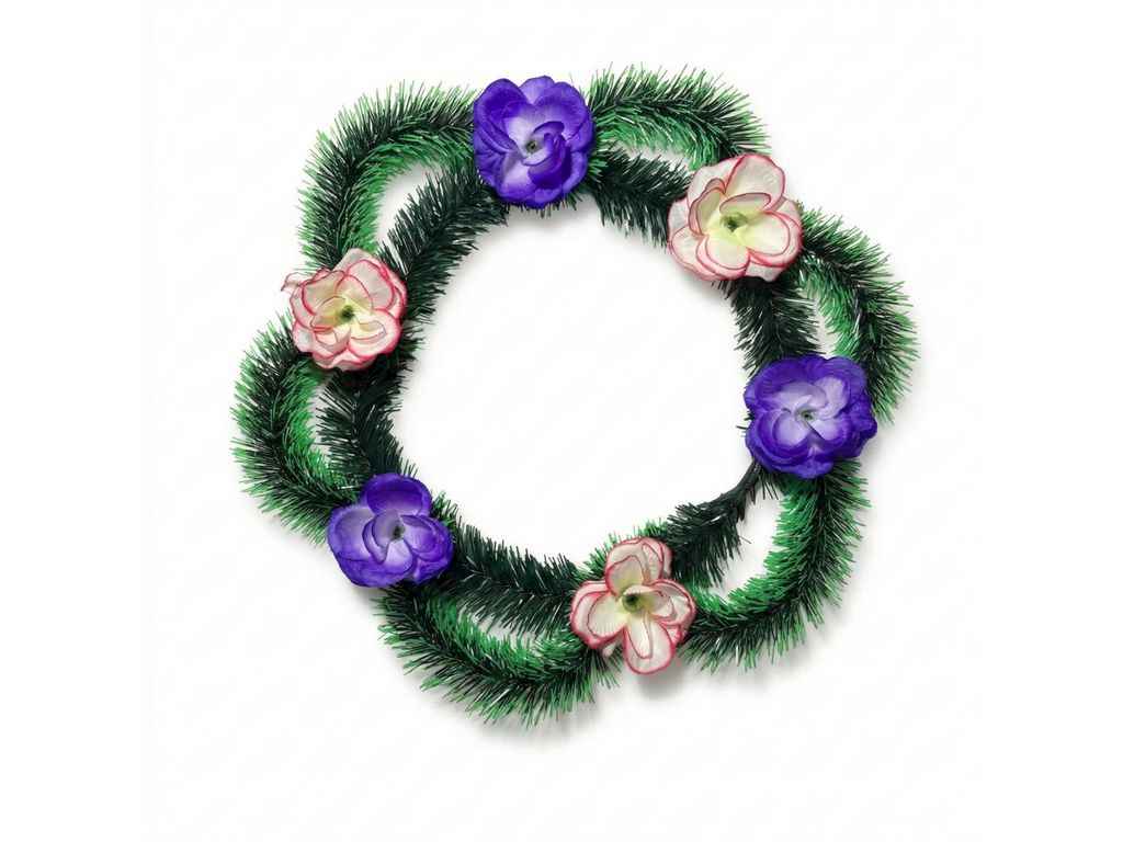 Вінок виготовлений з якісних матеріалів — прикрашений штучними квітами, це забезпечує охайний вигляд і довговічність. Кожна композиція продумана до деталей: гармонійне поєднання кольорів, акуратне оформлення.