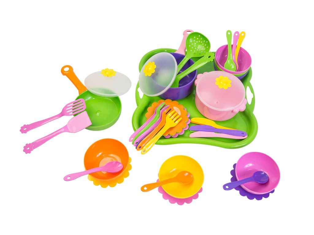 За допомогою ополоника можна розливати страви в тарілки і миски гостей. Ложки, вилки і ножі дозволять в ігровій формі вивчити правила сервірування столу. Піднос зробить подачу страв більш зручною.