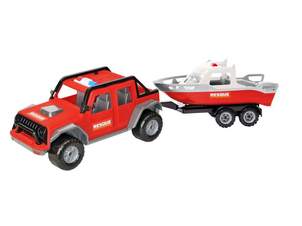Рятувальний джип із серії “Титан” у комплекті з причепом та катером створений для активних і захопливих ігор маленьких героїв. Набір відкриває широкі можливості для сюжетних пригод і рятувальних операцій як на суші, так і на воді.