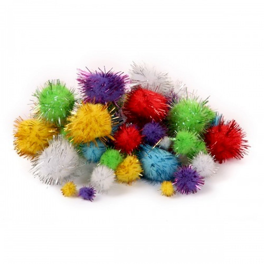 Декоративные помпоны с люрексом для творчества 955438 d-8 мм,15 мм,25 мм, 54 шт