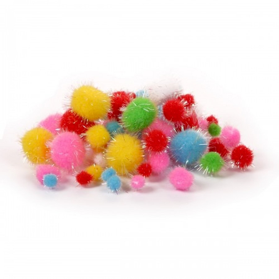 Декоративные помпоны с голографическим люрексом 955439 d-8 мм, 12 мм, 20 мм, 54 шт