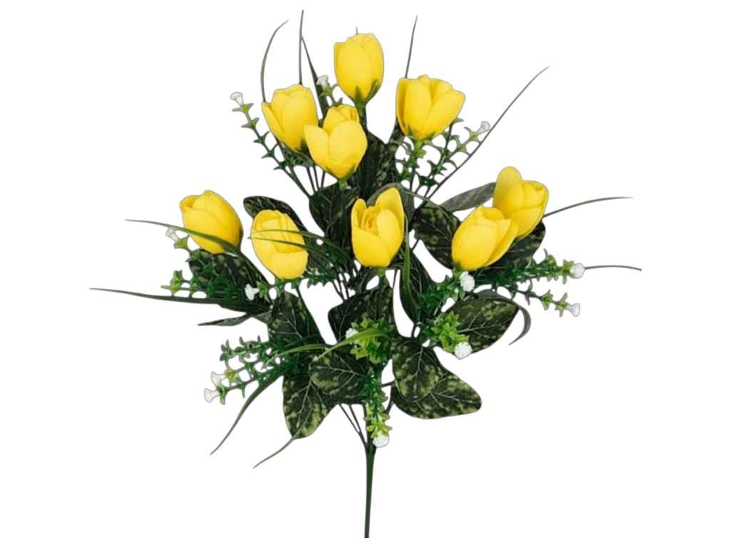 Букет Тюльпани з зеленью h-44см 9 бут. шовк жовтий 7322 ТМ КИТАЙ
