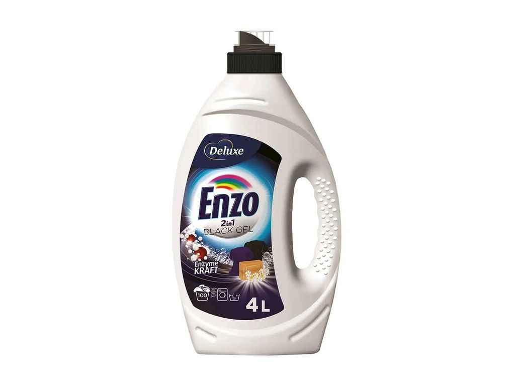 Enzo 2в1 Deluxe — концентрований гель для прання, розроблений для ефективного видалення забруднень і збереження кольору тканин. Ефективна формула від плям на основі ензимів легко відпирає складні забруднення з синтетичних та натуральних тканин. Засіб ефективно видаляє плями та має приємний свіжий аромат. Підходить для всіх типів пральних машин і ручного прання, ефективний при 30°C. – White Gel — для білого прання – Black Gel — захист чорного одягу від вицвітання – Color Gel — зберігає яскравість кольорів – Universal Gel — підходить для всіх типів тканин Ефективність прання — кожного дня з Enzo!