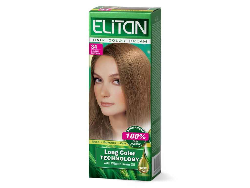 Крем-Крем-фарба для волосся №34 Золотистий шафран ТМ Elitan
