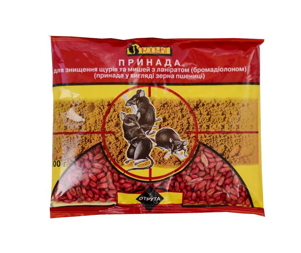 Отрута у зернах 100г для знищення щурів та мишей з ланіратом (бромадіолоном) ТМ ПРОДУКТ