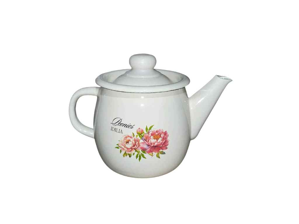 Заварник емальований 1л /2 Півонія (молочна) (I2707/2) ТМ IDILIA