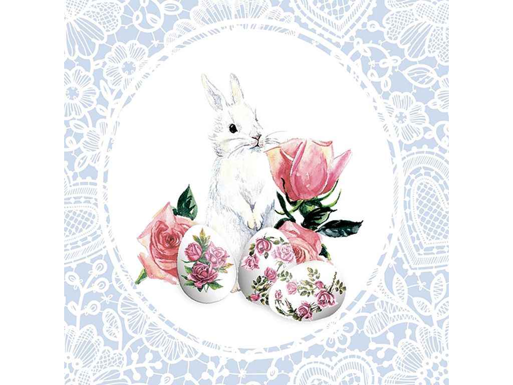 Серветки паперові великодні ВЕЛИКОДНЄ ЗАЙЧЕНЯ З ТРОЯНДОЮ 33*33см 12шт/уп 2шар ТМSILKEN