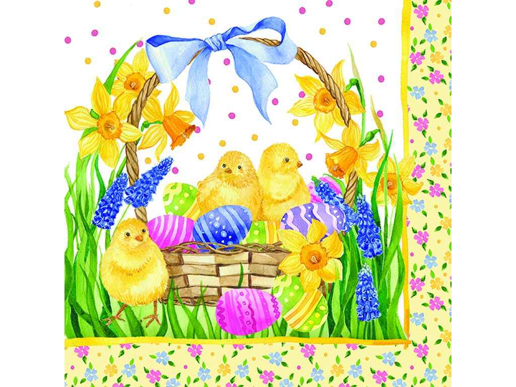 Серветки паперові великодні КУРЧАТА В КОРЗИНЦІ 33*33см 12шт/уп 2шар ТМSILKEN