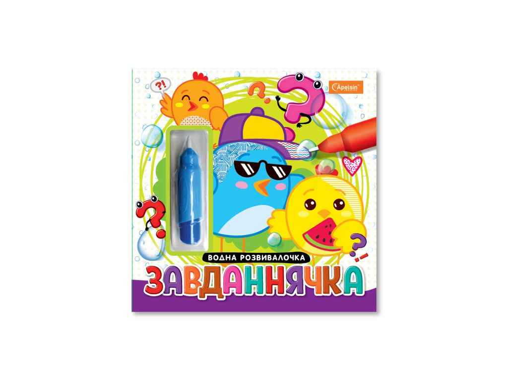 Набір для малювання водою з водним маркером Водна розвивалочка книжка-розмальовка Завданнячка ТМ АПЕЛЬСИН