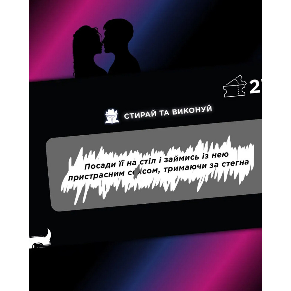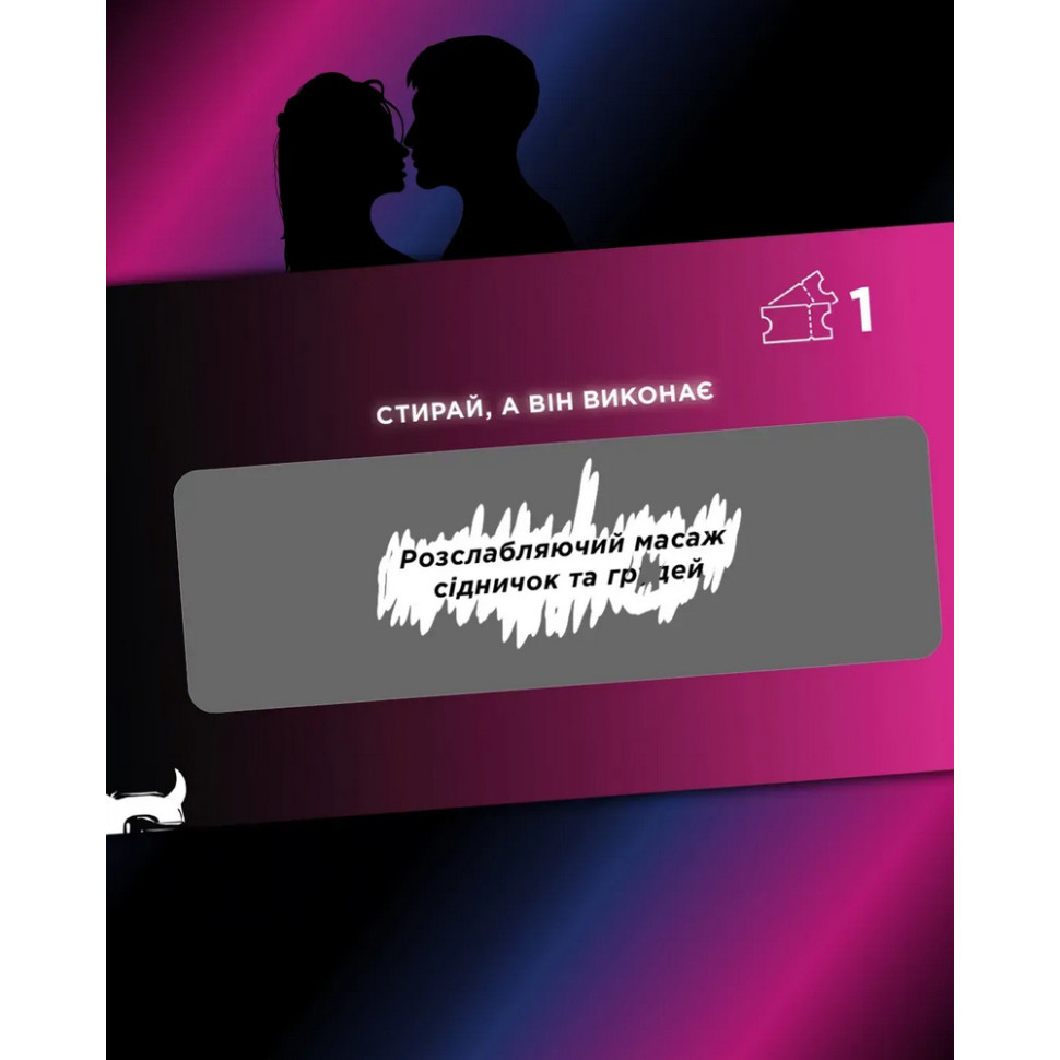 Добавьте азарта в вашу интимную жизнь«Интимная лотерейка: для неё»это 30 билетов, которые вам нужно оторвать, соскрести с них скретч-покрытие и наслаждаться выполнением самых интимных заданий от вашего партнераВ этой версии мы также добавили анонимные задания, благодаря которым вы до последнего не будете знать, какой сюрприз вас ждетА также бонусная лотерейка на последней странице