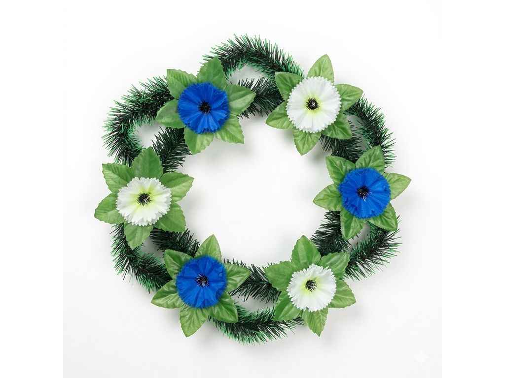 Вінок поминальний Волошка з листочками 40х40см біло-блакитний ТМ MEMORI