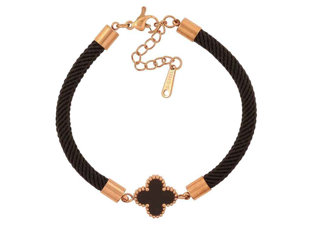 Браслет Нержавіюча сталь Чорний шнур зі вставкою конюшина з доп.ланцюжком 17-20см*4-13мм арт.320433 ТМ XUPING