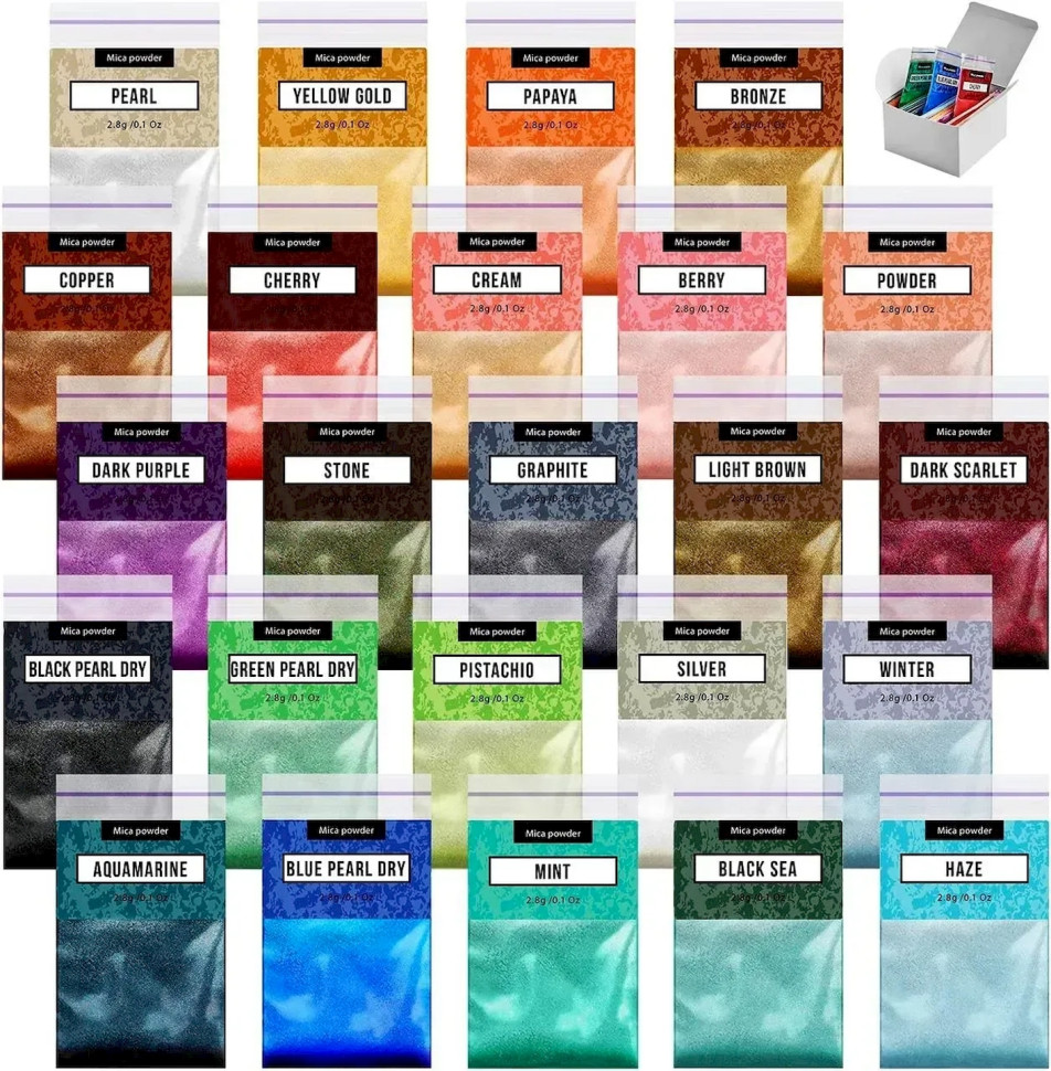 Слюдяной пигментный порошок для творчества MC-001, 24 пакета по 2,8 грамма