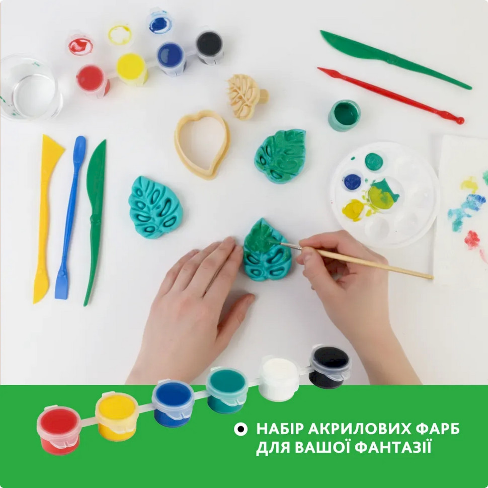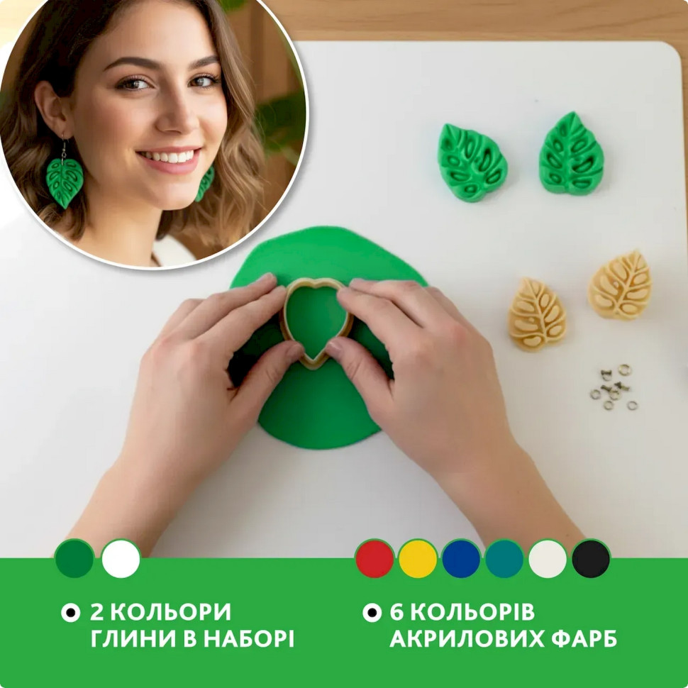 Творческий набор для изготовления украшений из полимерной глины «Листья»Описание товара:Творческий набор «Листья» - это стильный комплект для создания украшений из полимерной глины собственноручно. С помощью молда-вырубки в форме листьев можно сделать оригинальные серьги, подвески, брелоки, браслеты или другие декоративные аксессуары с естественным дизайном.Набор подходит как для начинающих, так и для тех, кто уже имеет опыт в лепке. Творческий процесс помогает развивать фантазию, внимательность и мелкую моторику, а готовые изделия могут стать стильным аксессуаром или приятным подарком, созданным своими руками.Состав набора:полимерная глина - 2 цвета по 20 гпластиковый молд-вырубка «Листья»акриловый глянцевый лак - 10 мл.кисточки для лака и красок - 2 шт.акриловые краски - 6 цветов по 2 млшвензы для сережек - 4 шт.штифты - 4 штсоединительные кольца - 4 шт.кольца для брелока - 2 шт.замшевый шнур - 1 мпилочка-баффшилонабор стеков для лепки - 4 шт.деревянная скалкапошаговая инструкцияПреимущества набора:полная комплектация для творчестваподходит для детей и взрослыхпозволяет создать несколько разных украшенийстильный природный дизайнотличный вариант для подаркаСовет:Не используйте кухонную посуду после работы с полимерной глиной.