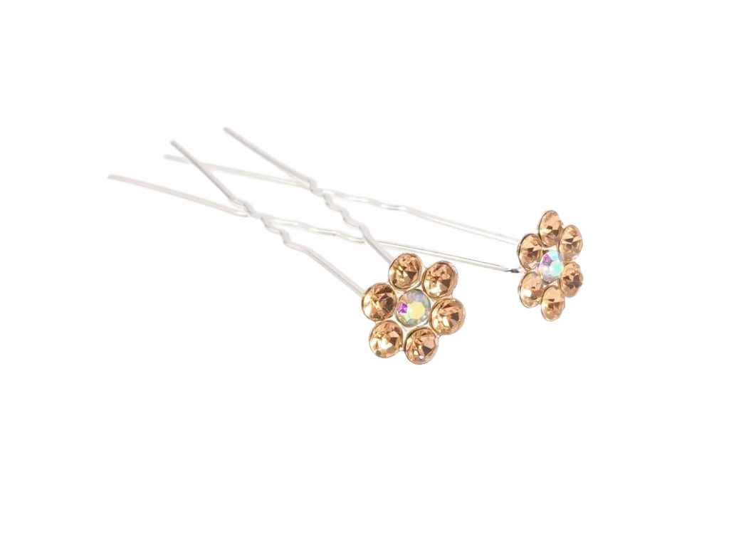 Шпильки для волосся 6,5см 20шт Персикова квіточка зі страз ø 11мм арт.085665 ТМ XUPING
