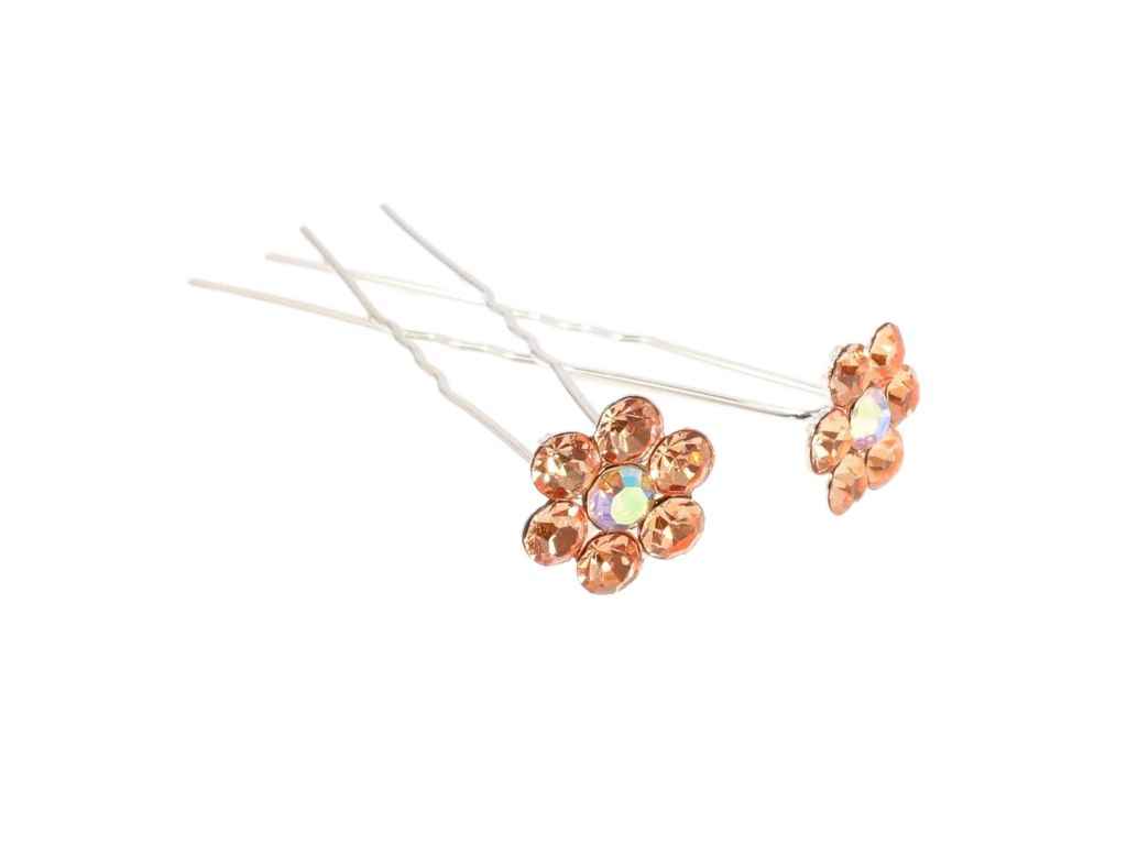 Шпильки для волосся 7см 20шт Персикова квіточка зі страз ø 14мм арт.085689 ТМ XUPING