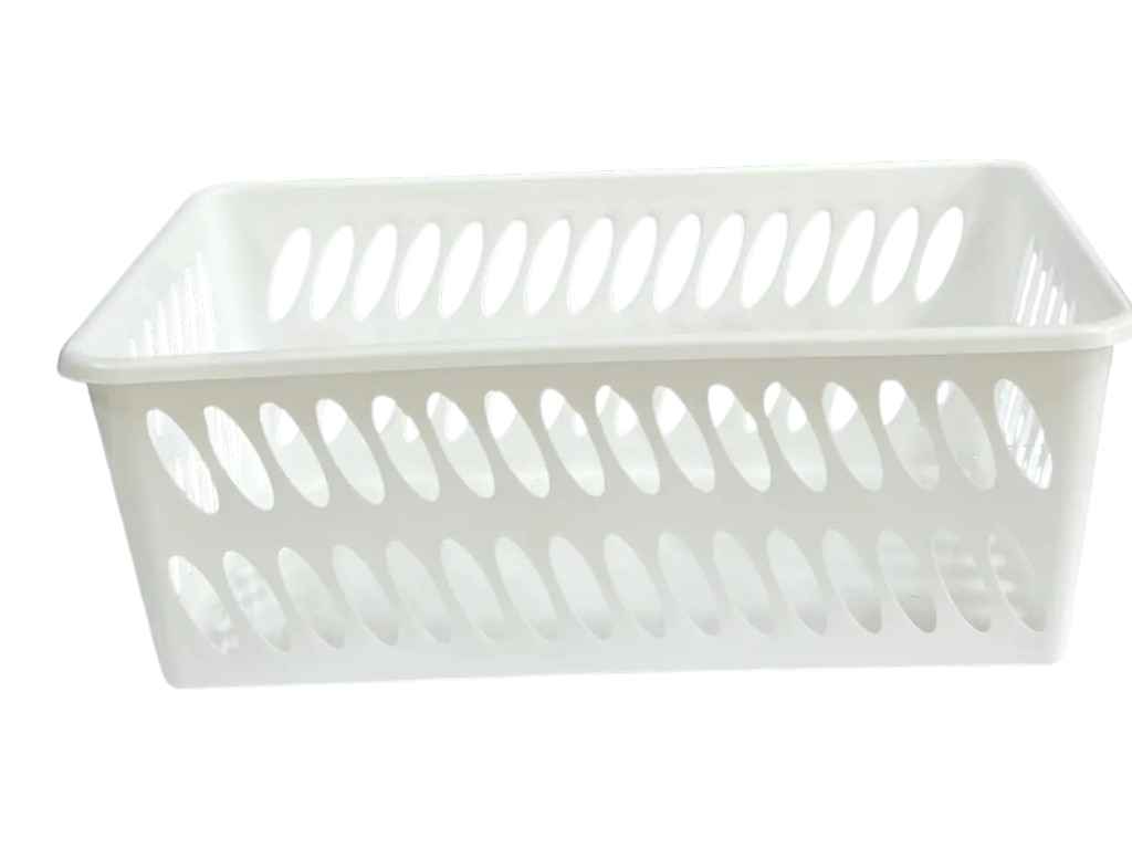 Універсальний кошик з перфорованими боками неодмінно знайде собі застосування в ванній, на кухні та інших кімнатах вашої оселі. А також практичний у використані в офісних приміщеннях, школі, вітринах магазинів та супермаркетів. Зручний органайзер для будь-яких потреб, легко вмістимий в скрині чи шухляді.