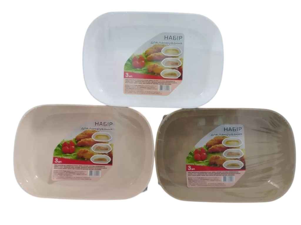 Набір ємностей для панірування м’ясних, рибних, овочевих заготовок, напівфабрикатів, виробів з тіста, – прекрасний вибір господинь. Допоможе раціонально організувати робоче місце на кухні, зробить процес приготування їжі приємним, зручним, захопливим.