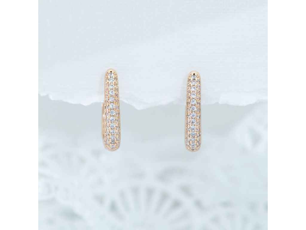 Сережки англійська застібка DGS Елена 1070 розмір 19х3 мм білі фіаніти вага 3.5 г позолота 18К ТМ XUPING