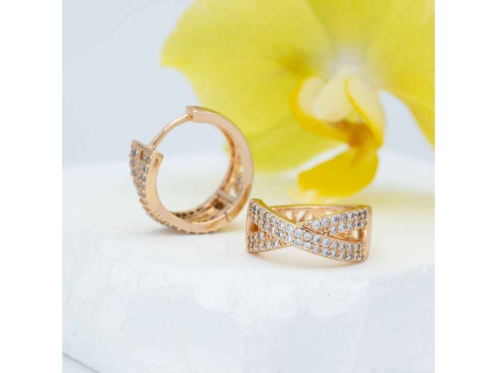 Сережки кільця DGS Хеймі 1128 розмір 17х7мм білі фіаніти (1128Красп) ТМ XUPING