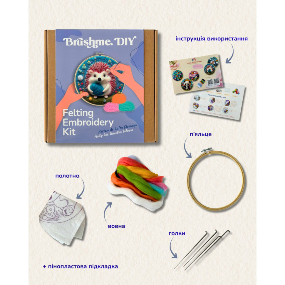 Набор для вышивки шерстью - это простая и увлекательная техника работы с натуральной шерстью, которая позволяет производить объемные изделия без сложных инструментов и предыдущего опыта. Благодаря сухому валке мягкая шерсть легко превращается в форму, держит объем и смотрится аккуратно уже с первой работы.Что входит в набор:ШерстьХолст с рисункомИглы для валянияПенопластовая подкладкаИнструкция по использованиюКому этот набор?для новичков без опытадля тех, кто ищет креативное хоббидля творческого подаркадля ценителей творить своими рукамиРазмер: 20 см