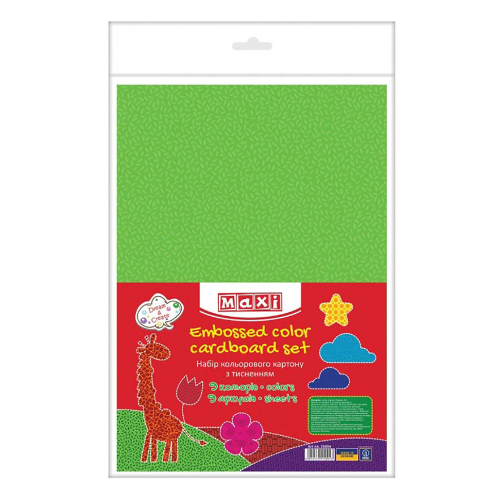 Набор цветного картона с тиснением 21004K, 9 листов, 9 цветов, формат А4