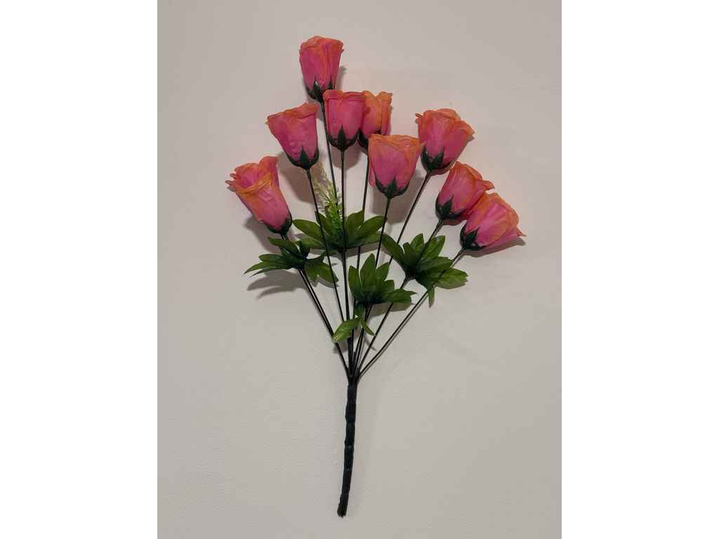 Букет штучних квітів шовк Троянди h-50см г-10 р-7,5см фуксія з рижим кантом ТМ MEMORI