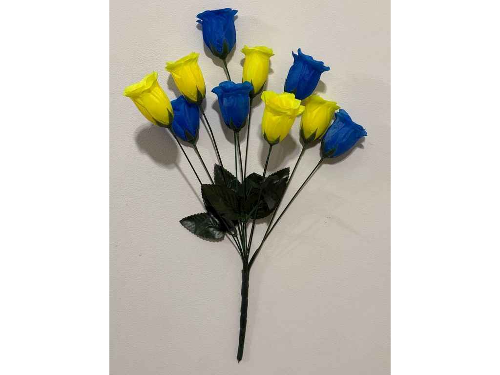 Букет штучних квітів шовк Троянди h-50см г-10 р-7,5см жовто-блакитний ТМ MEMORI