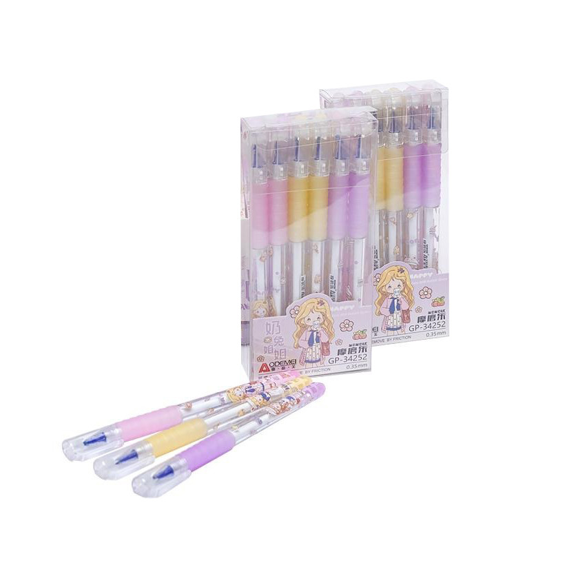 Ручка гелевая "пишет-стирает". Пластиковый цветной с рисунком корпус, резиновый грип. Толщина 0,35 мм. Сменный стержень. Цвет синий.