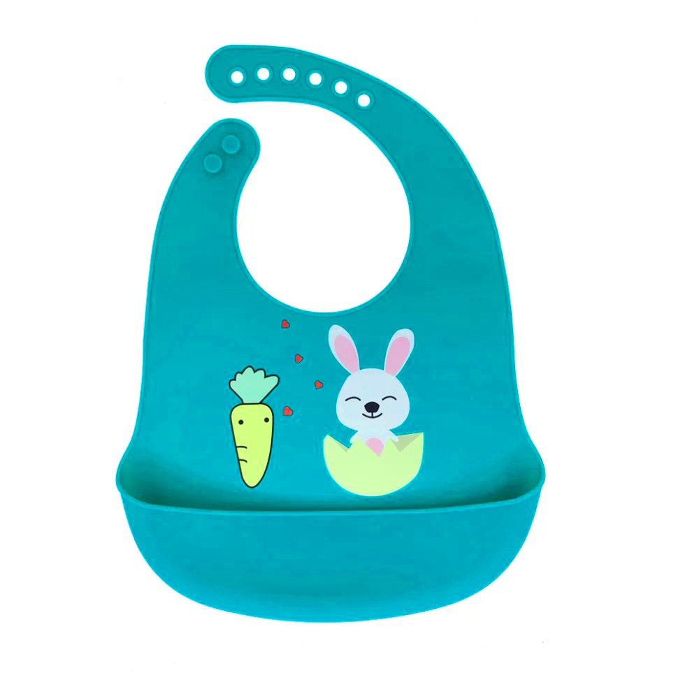 Слюнявчик силиконовый "Зайка" MGZ-0611(Blue) с карманом