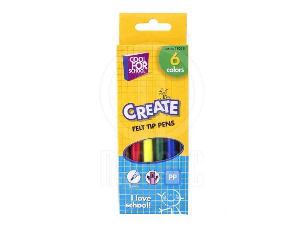 Фломастери 6 кольорів, в коробці, Cool for school