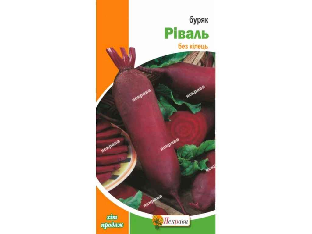 Буряк Ріваль-подовжені коренеплоди мають солодкуватий насичений смак, підходять для приготування страв, тривалого зберігання і перероблення. З одного квадратного метра можна зібрати до 4,5-7 кг / м² буряка Ріваль. Звичайно, це можливо, якщо дотримуватися мінімальних умов вирощування. Це посадка на сонячній ділянці, поливи та прополки.Дозріває за 90-110 днів,маса 250-300 г, діаметр 5-8 см, довжина 15-20 см. Насіння замочують на пару діб, міняють воду 2-3 рази,сіють із квітня-травня, у вологу пухку землю, на глибину до 3-4 см,сходи зявляться через 5-7 днів, вони витримують мороз до -2 градусів.